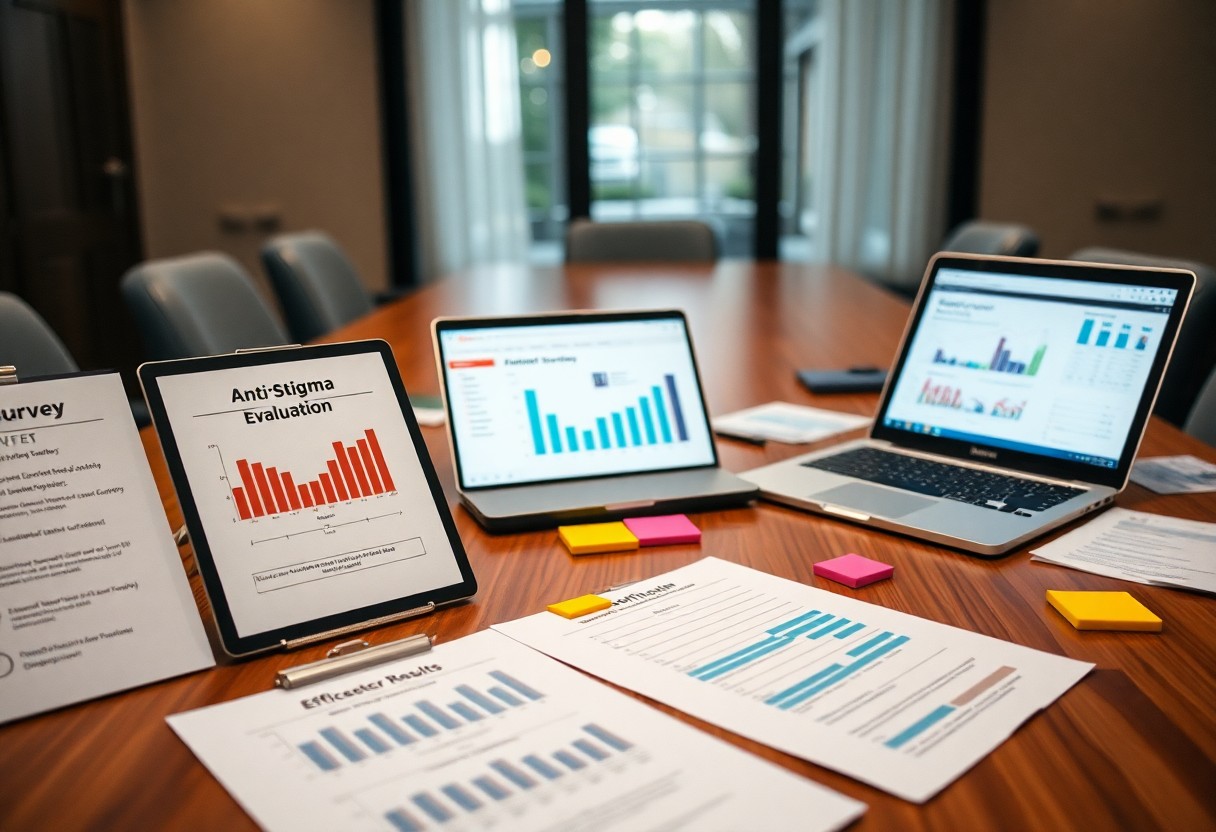 Measure program impact with pre/post surveys, EAP usage, absenteeism, and incident reports; you track help-seeking increases and declines in harassment reports to quantify stigma reduction.